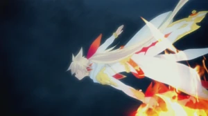The characters Sorey and Rose can also perform armatization, which fuses either of them with a chosen seraph partner to produce a powerful hybrid form: this form can perform magical attacks indicative of the element the seraph represents. While in this form, the human character's stats are boosted, and they gain special abilities unique to the fusion: the character can wield a large sword and fire-based magic (Lailah), shoot water arrows using a bow (Mikleo), use stone fists and summon stone pillars (Edna), and gain blade-like wings and summon whirlwinds (Dezel/Zaveid). A character can swap their seraph partners while not in this form, and both characters capable of armatization can be in this form at the same time. If the human character is defeated on the field, activating armatization will resurrect them if their current seraph partner is still active. There is a maximum of four party members allowed in battle, with one seraph being linked to one human at a time as battle-wise seraphim rely on humans to fight. This also limits the number of active battle members if Sorey does not have a Squire accompanying him.